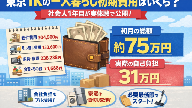 東京1Kの一人暮らし初期費用はいくら?社会人1年目が実体験で公開【約75万円】